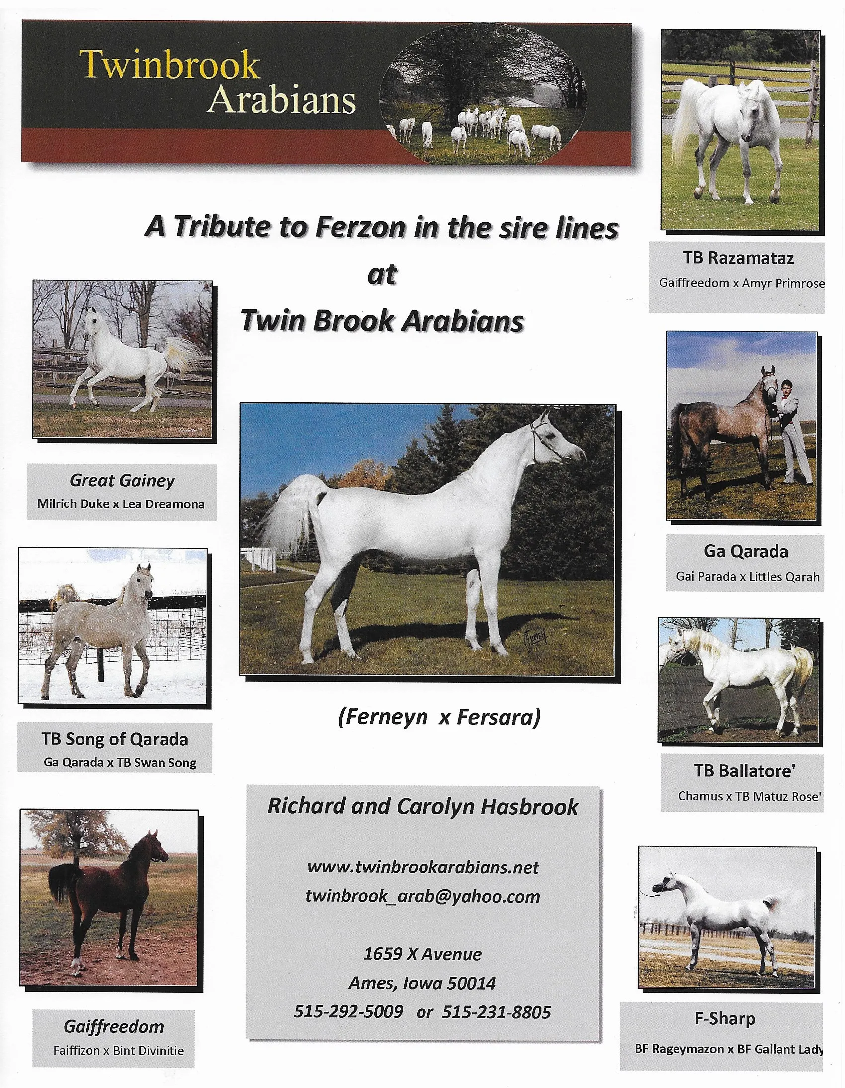 We honor the enduring sire-line influence of Azraff and Ferzon at Twin Brook Arabians. Through generations of exceptional horses, their bloodlines continue to define classic Arabian type, strength, and refinement—preserving a heritage built on quality, character, and timeless beauty.